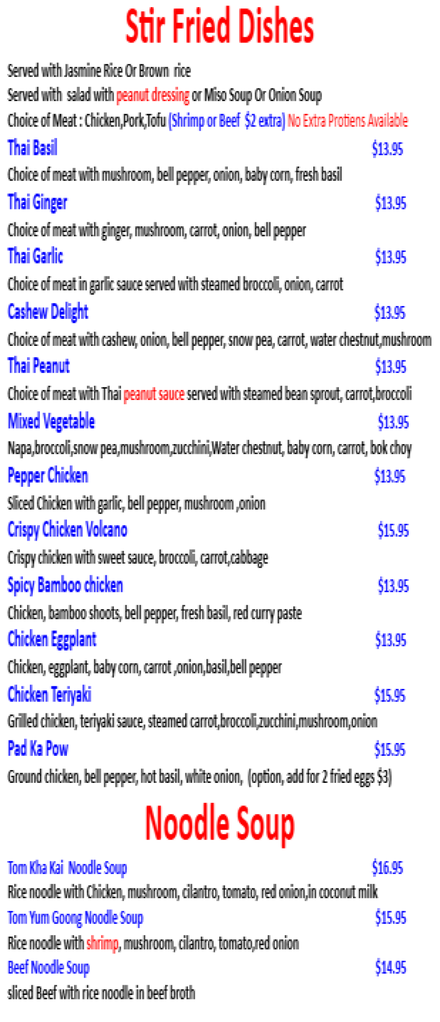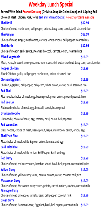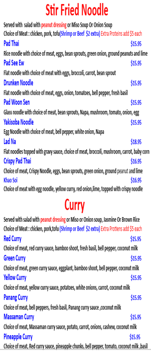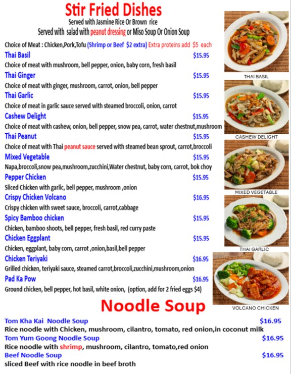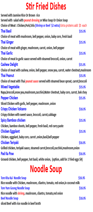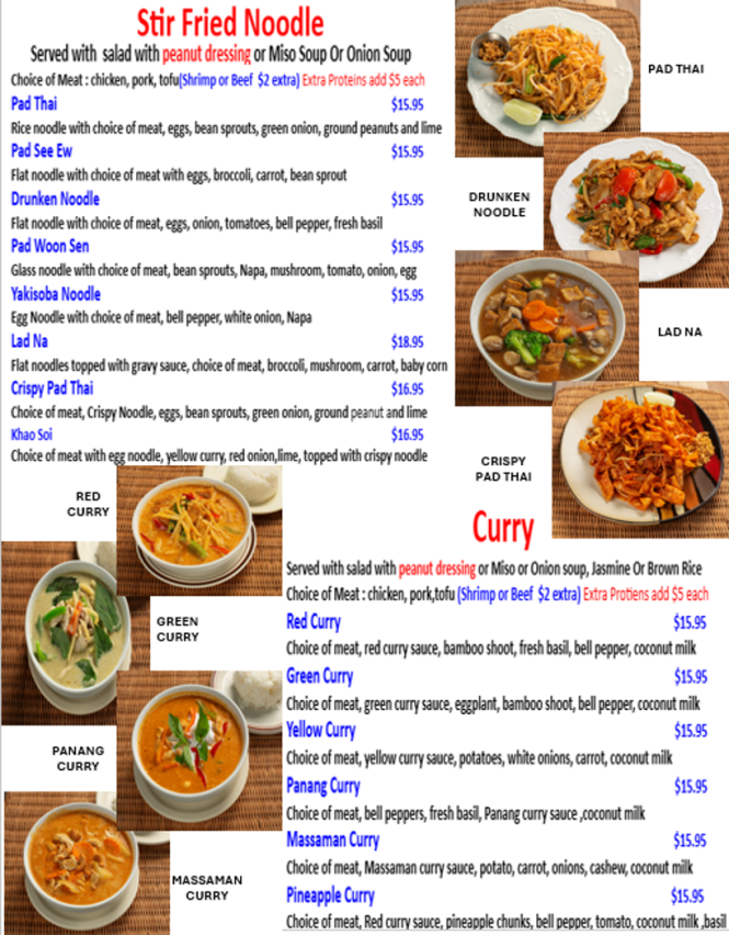 Authentic, Traditional Thai Cuisine, freshly prepared and made to order! As mild or wild as you want!